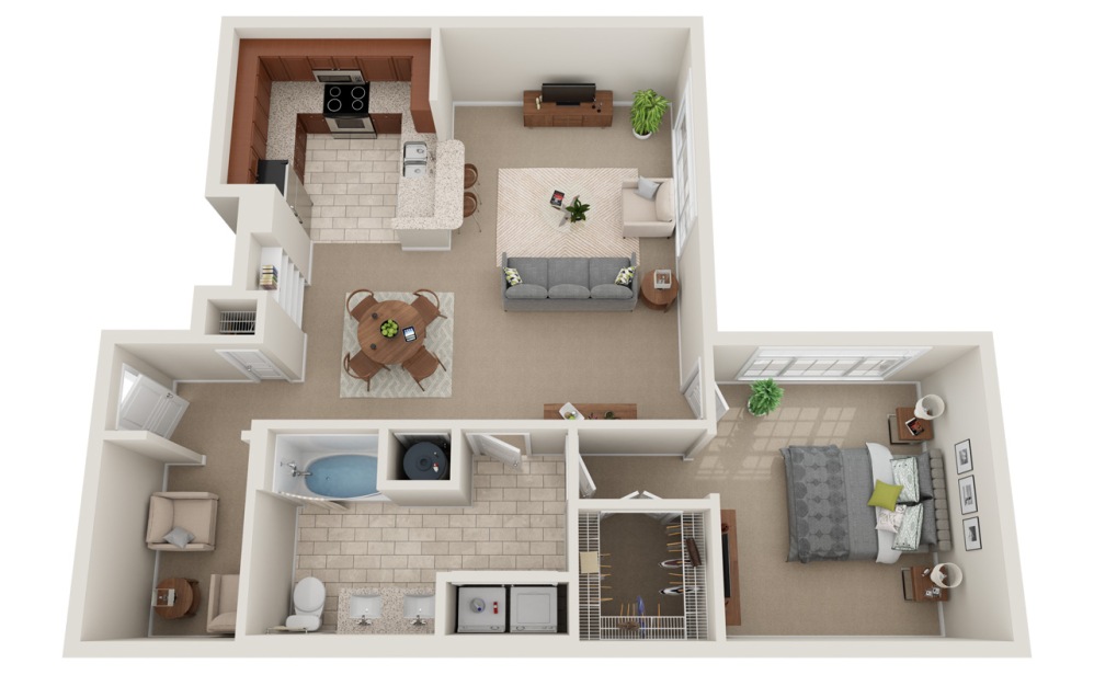 Floorplans are an artist’s rendering and may not be to scale. The landlord makes no representation or warranty as to the actual size of a unit. All square footage and dimensions are approximate, and the actual size of any unit or space may vary in dimension. The rent is not based on actual square footage in the unit and will not be adjusted if the size of the unit differs from the square footage shown. Further, actual product and specifications may vary in dimension or detail. Not all features are available in every unit. Prices and availability are subject to change. Please see a representative for details.